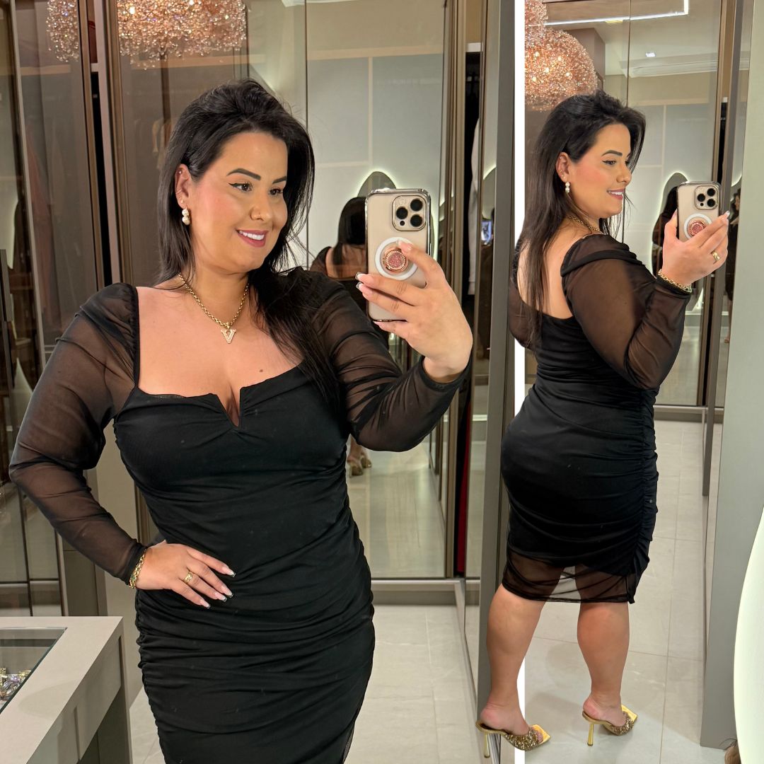 Vestido Tule Dayana Aro V Preto Plus Size